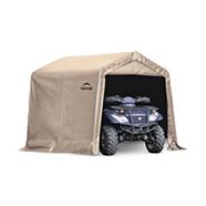The storage shed includes a ratchet tite cover, designed for use in all seasons to protect against sun, rain, sap and more.
