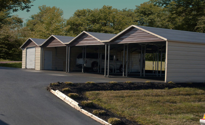 Custom Metal Sheds. Metal carport sheds are often used in a residential setting for many different purposes. For our aluminum buildings, you can choose from 16 different colors for the roof and trim as well as custom options for the windows and doors.